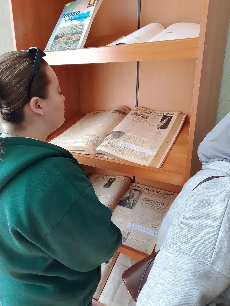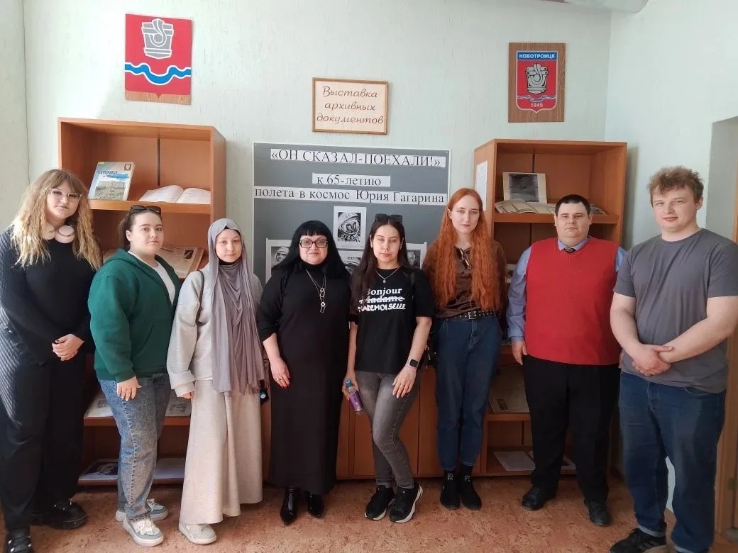 Студенты познакомились с фондами архива и посетили организованную в нем выставку, посвящённую 65-летию полёта первого человека в космос. Познакомились с фотографиями, газетой "Гвардеец труда", в которой были запечатлены события 65-летней давности.