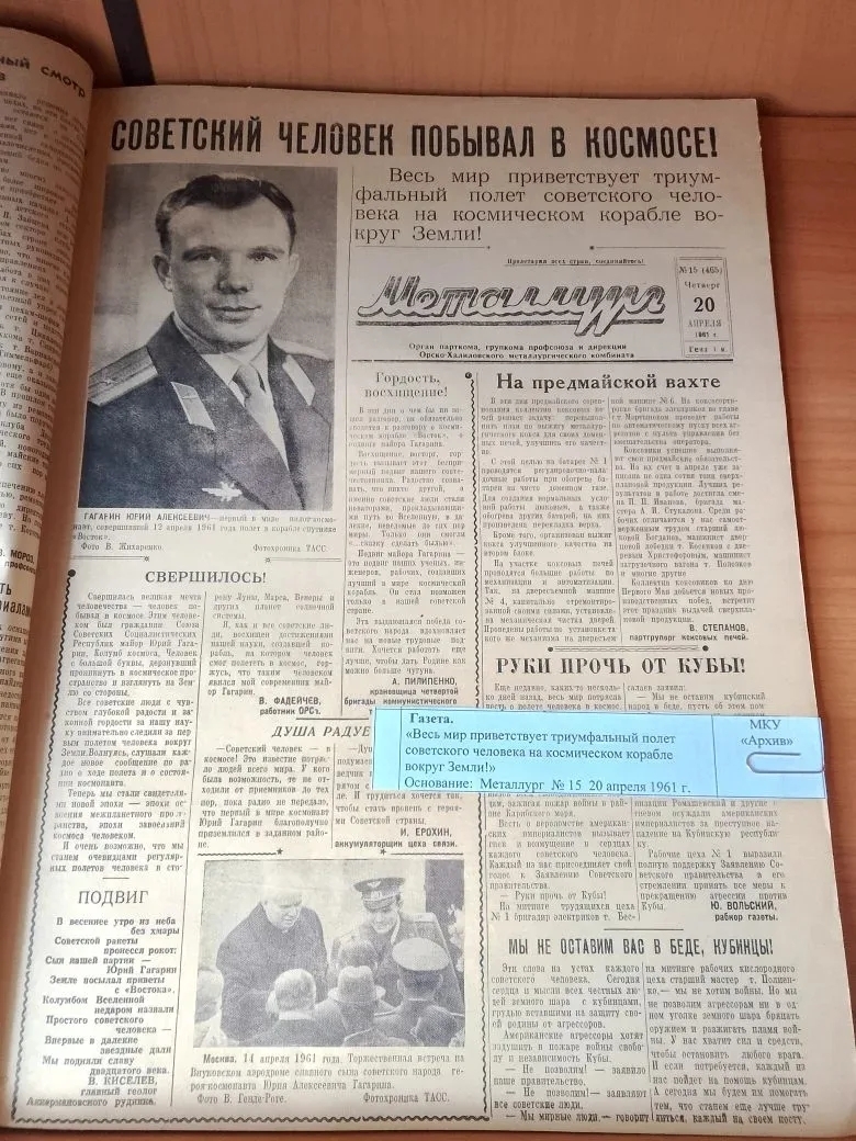 Следует отметить, что в Новотроицке, как и во всей стране, граждане торжественно и с большим энтузиазмом встретили новость о большой победе советского народа в освоении космоса.