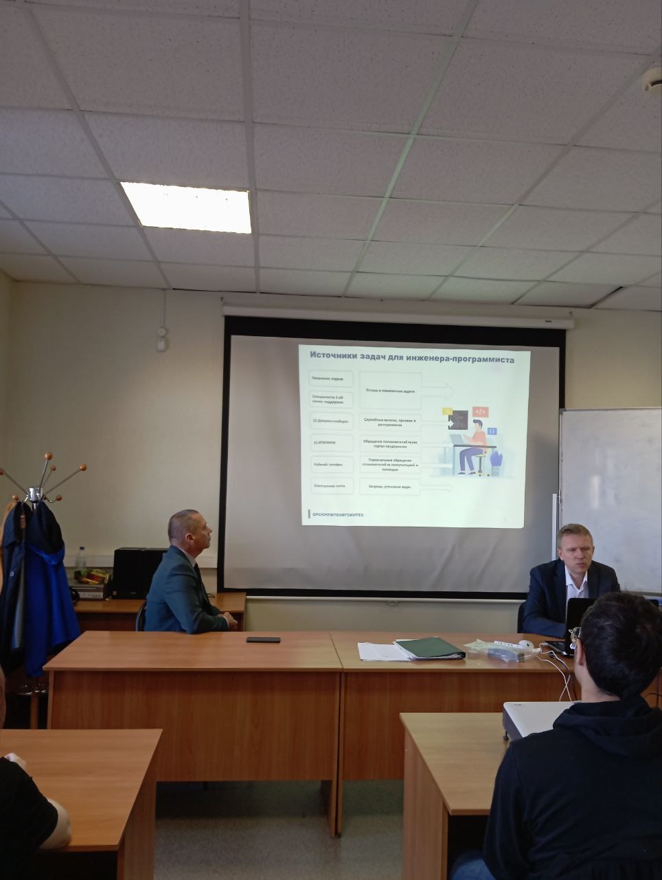 Руководители ИТ-отделов Бесов П.С. и Чайка О.Ю. с помощью наглядной презентации дали всестороннее описание задач автоматизации, которые охватывают полный цикл переработки нефти и связанный с этим документооборот. Рассказали об используемых инструментальных средствах и программных платформах разработки и сопровождения программного обеспечения, ответили на вопросы студентов.