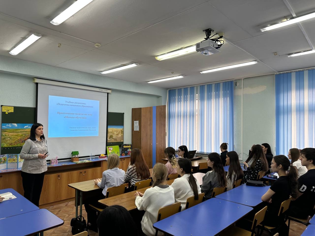 Со звонком ученики отправились на свои первые в жизни пары в институте. Доцент А.А. Максимова провела практическое занятие по педагогике начального образования, где обучающиеся 11 класса вместе со студентами выполняли практические задания, отвечали на вопросы преподавателя и участвовали в дискуссии.