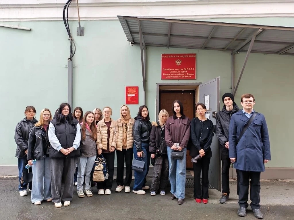 Студенты группы 25Юр(б)ГрП, совместно с лаборантом кафедры Экономики и управления А.С. Топоевой приняли участие в рассмотрении уголовного дела, предусмотренного ч. 1 ст. 119 УК РФ, рассматриваемым мировым судьей судебного участка №5 Ленинского района города Орска Оренбургской области.